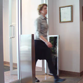 Mounted on the door frame itself, the bowed side unit is ideal for doorway applications. Lightly curved sides are an elegant touch.